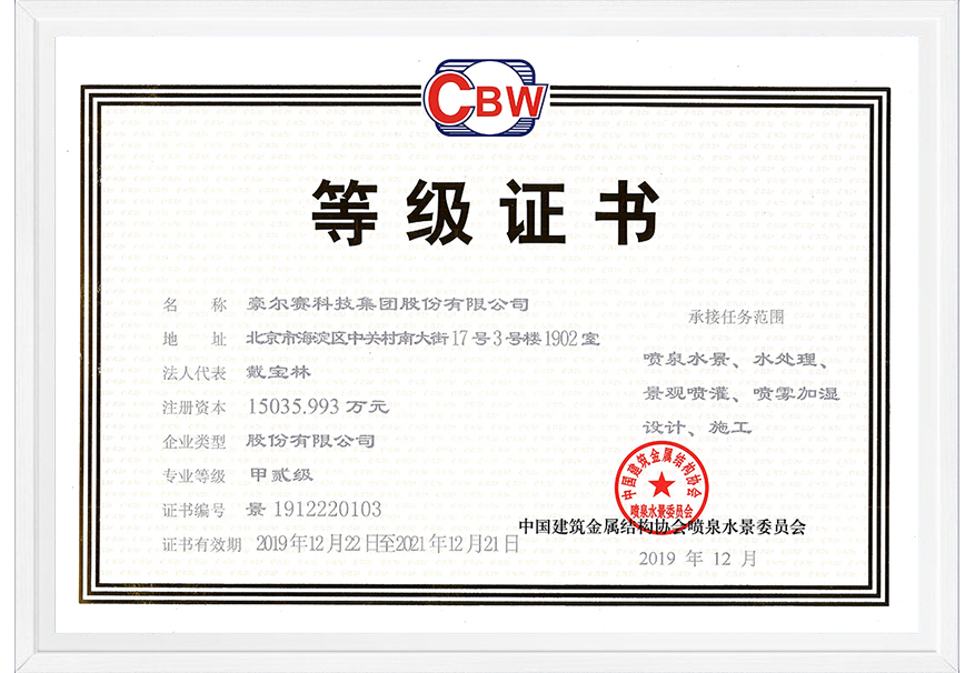 HES Group became one of the first batch of enterprises in China boasting of Grade-A Lighting Design Qualification and Grade-A Cities and Roads Lighting Project Construction Qualification, as well as “Grade-A Fountain Waterscape Treatment Landscape Sprinkler Irrigation and Spray Humidification Design Construction Qualification. The company has passed GB/T19001-2016 idt ISO9001:2015 & GB/T50430-2017 quality management, GB/T 2401-2016 idt ISO14001:2015 environmental management, GB/T 45001-2020 idt ISO45001:2018 occupational health and safety management systems certification, etc. We have also obtained AAA credit rating certification from the national authoritative credit rating agency.